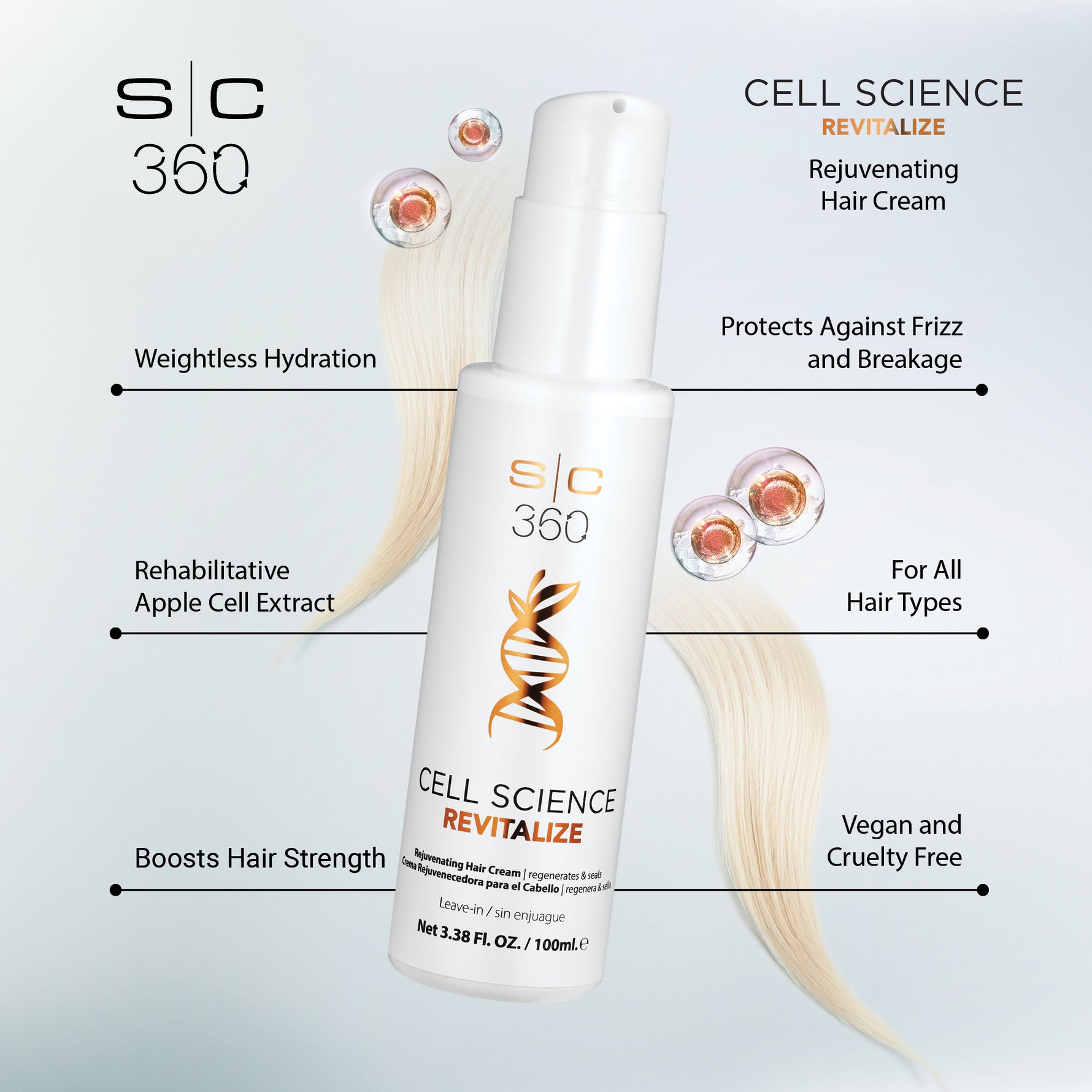 Unit price perRejuvenate your hair with the S|C360 Cell Science Revitalize Hair Cream, a deeply enriching treatment designed to nourish and strengthen. Infused with the fortifying essence of our advanced Apple Cell Extract, it delicately penetrates the cuticle, boosting durability and counteracting the effects of aging.